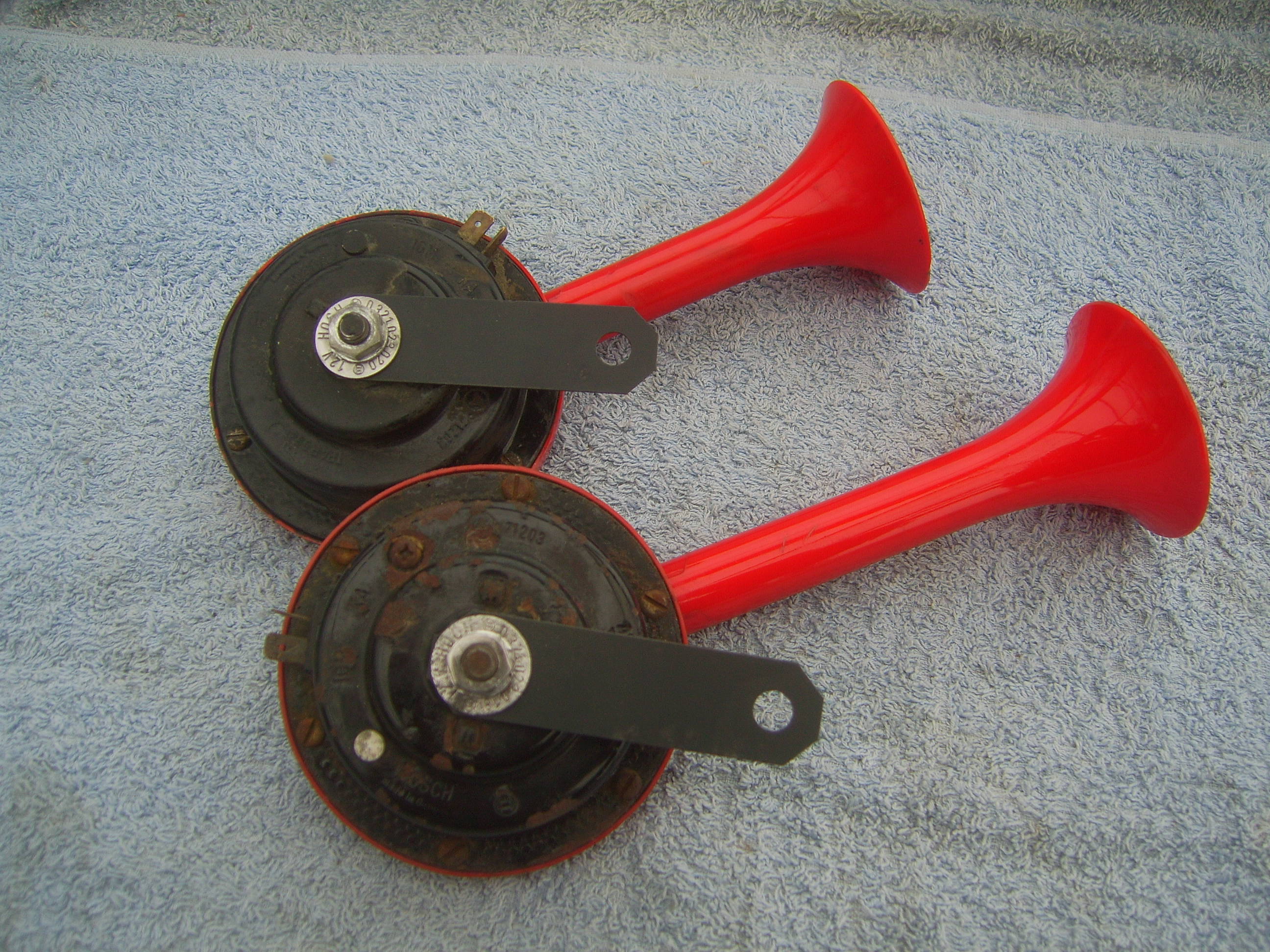 FS: Long and short Bosch red banjo horns, date code 029 (Sept '70) and 031 (Nov '70). Both horns are working very good and are in decent condition without any cracks. Price 595 euro + shipping.