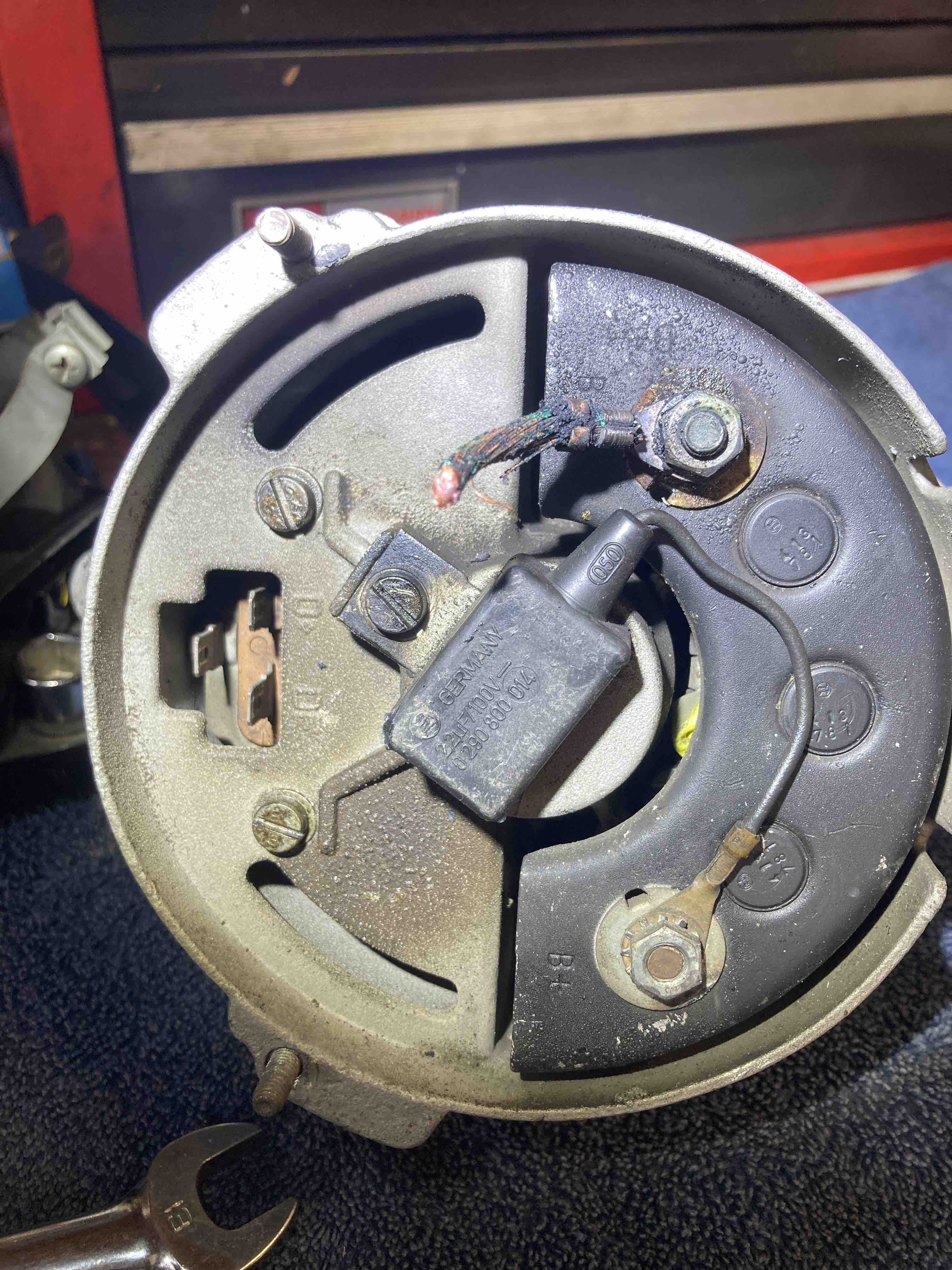 http://www.914world.com/specs/alternator_replacement.php If it turns out you need a new VR let me know. I have 2 NIB Bosch VRs on my shelf that can best be described as an ode to spending too much money on parts I might need someday. One can be yours for the asking. Get a replacement wiring harness from Jeff. You'll not beat the quality of his work. |