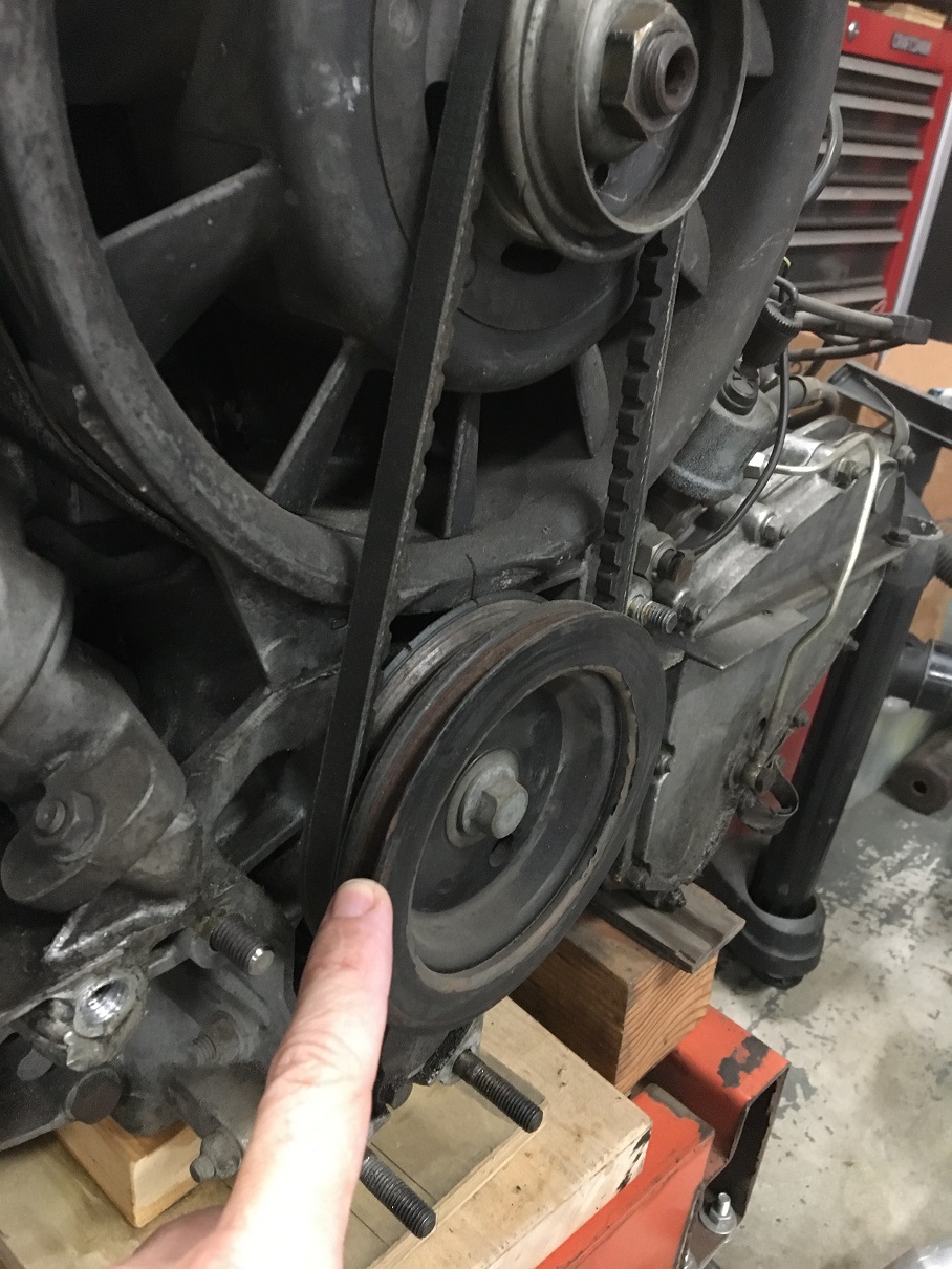 I'm changing the V-belt and dual pulley like yours on my '86 930 to a Clewett serpentine flat belt like modern vehicles. Thus getting rid of the ridiculous belt adjustment via shims.