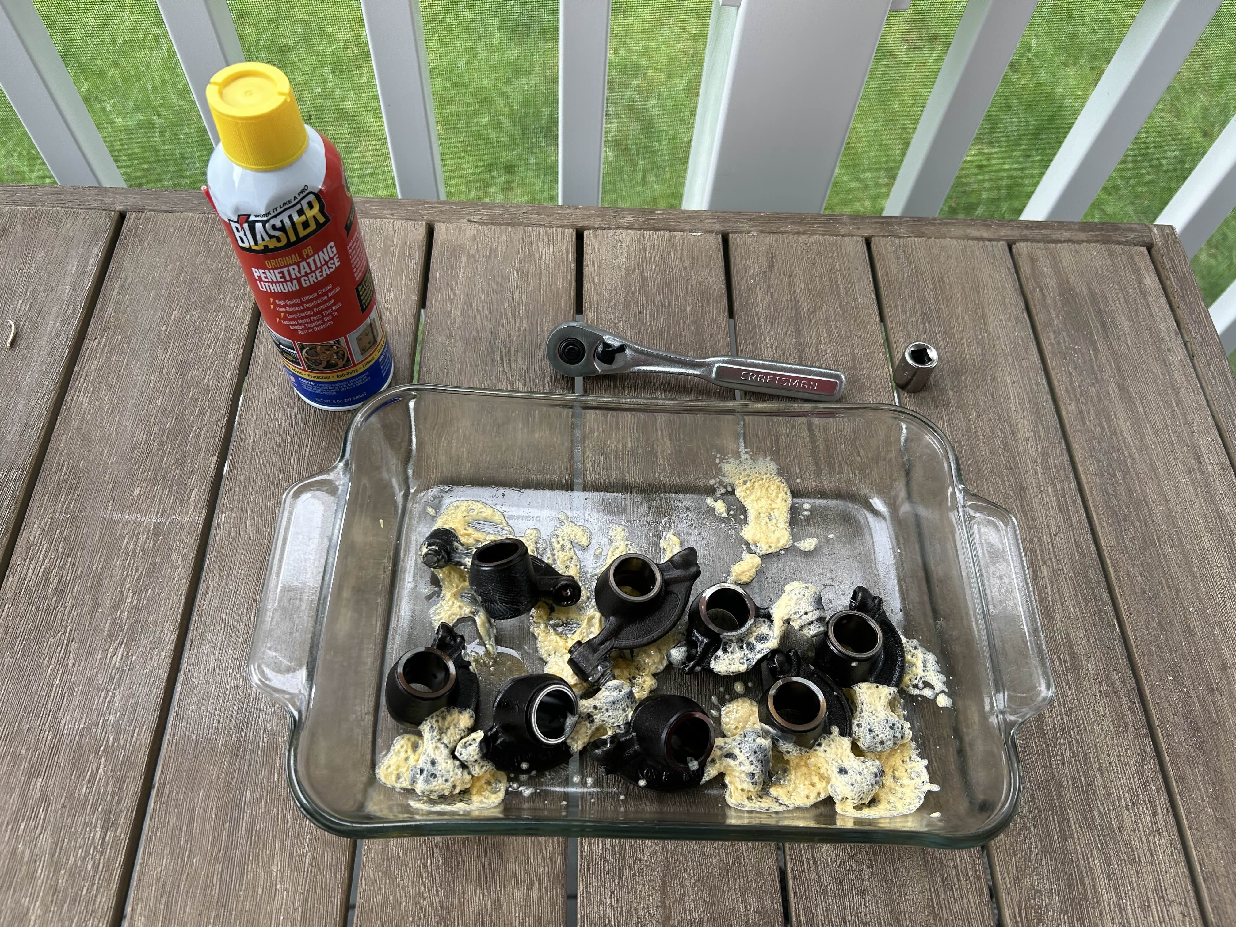 A kind member @cgnj sent me a spare set of 2.0 of rockers with adjuster screws and nuts. He said he put them through a parts washer before shipping them. I could not get the nuts off the screws so I hit them w/ PB Plaster Lithium Penetrating Grease and let them soak for a couple of nights. They still won't budge. WTH.