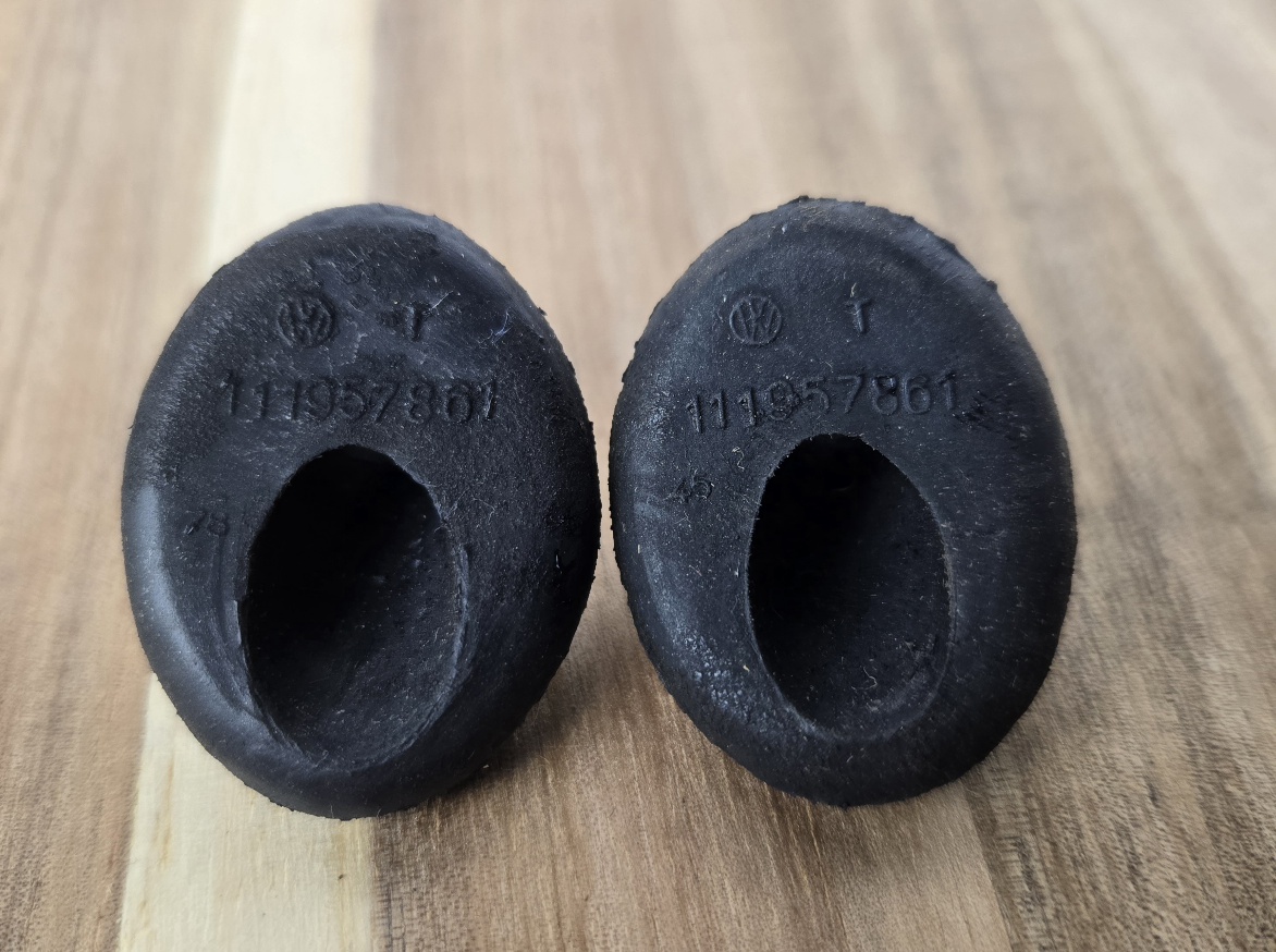 They are the same part number as VW Bug speedometer cable grommets that go under the front fender. They are readily available from most VW parts suppliers, and I believe from 914 Rubber. They are available new from Porsche for about $10 each and Uro parts. Probably available from VW too. From VW shops they're about $3.00 each, or less. |