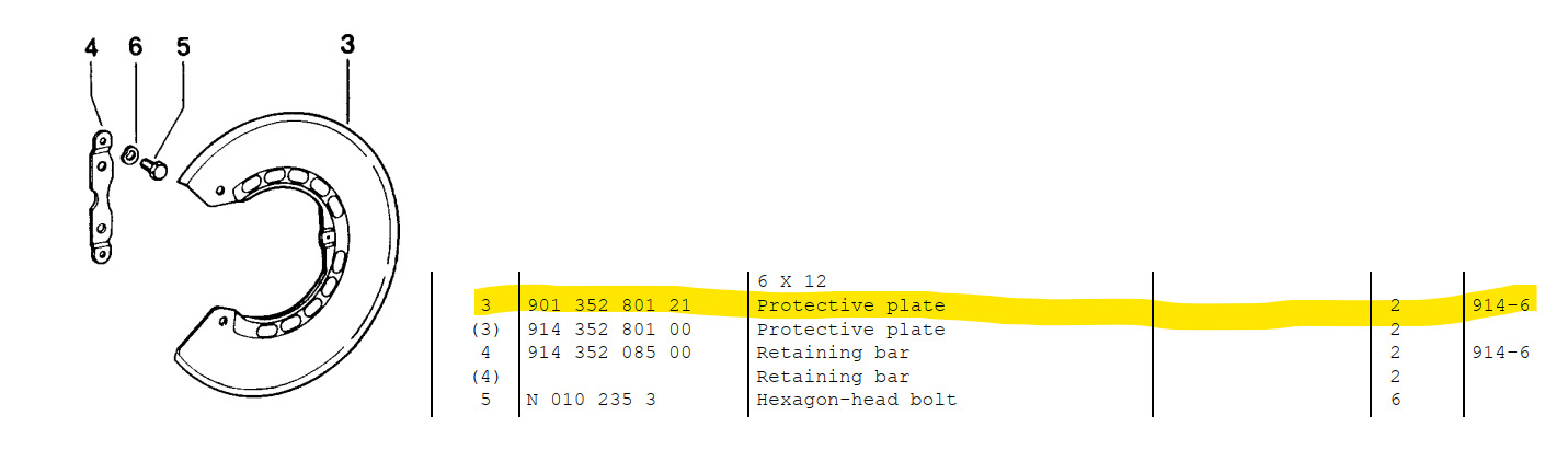 Dennis…Were you able to establish diameter of -6 part? What I learned I put in the post in the parts vault: 901.352.801.201, Protective Plate - Disc brake rear 914-6 . It appeared to me the -6 was ~308 mm. I pulled that dust shield off our factory 914-6. That said, the car has some modifications so it's possible it was replaced at one time. I don't think so though. They fit the stock rotors quite well. They were very rough, so hard to tell what the original finish was. |