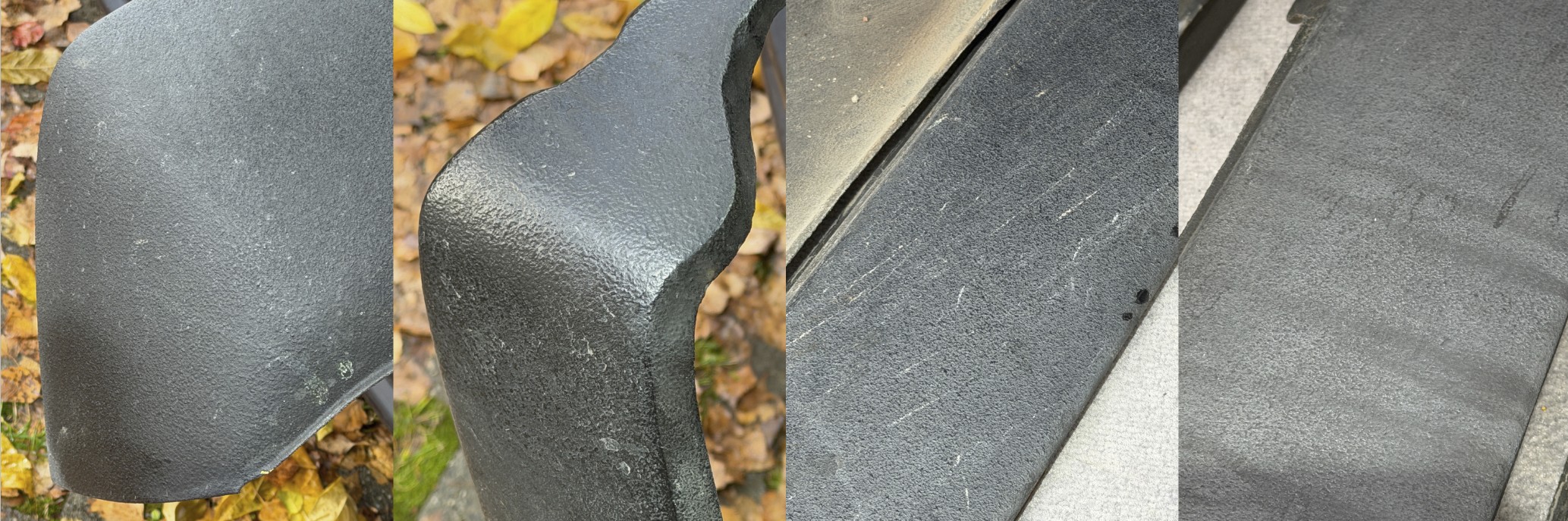 The manual just states "dull black". Doesn't say anything about texture (or degree of "dull"-ness for that matter). The roof is textured of course, I think that may have actually done in the fiberglass originally. But it does not say anything about texture on the lower parts. The manual also includes the non-chrome bumpers on '73+ Euro models in the "dull black" description. So, texture or no texture? Texture is often put on to hide imperfections. I remember "back in the day" when as an ID modelmaker I used to paint parts with 2K polyurethane paint (Polane, highly toxic) to get that "IBM typwriter" texture popular back then. IBM painted their metal Selectric typwriter frames with a thick, coarse-textured coating of the stuff to hide all the imperfections from their metal fab. |