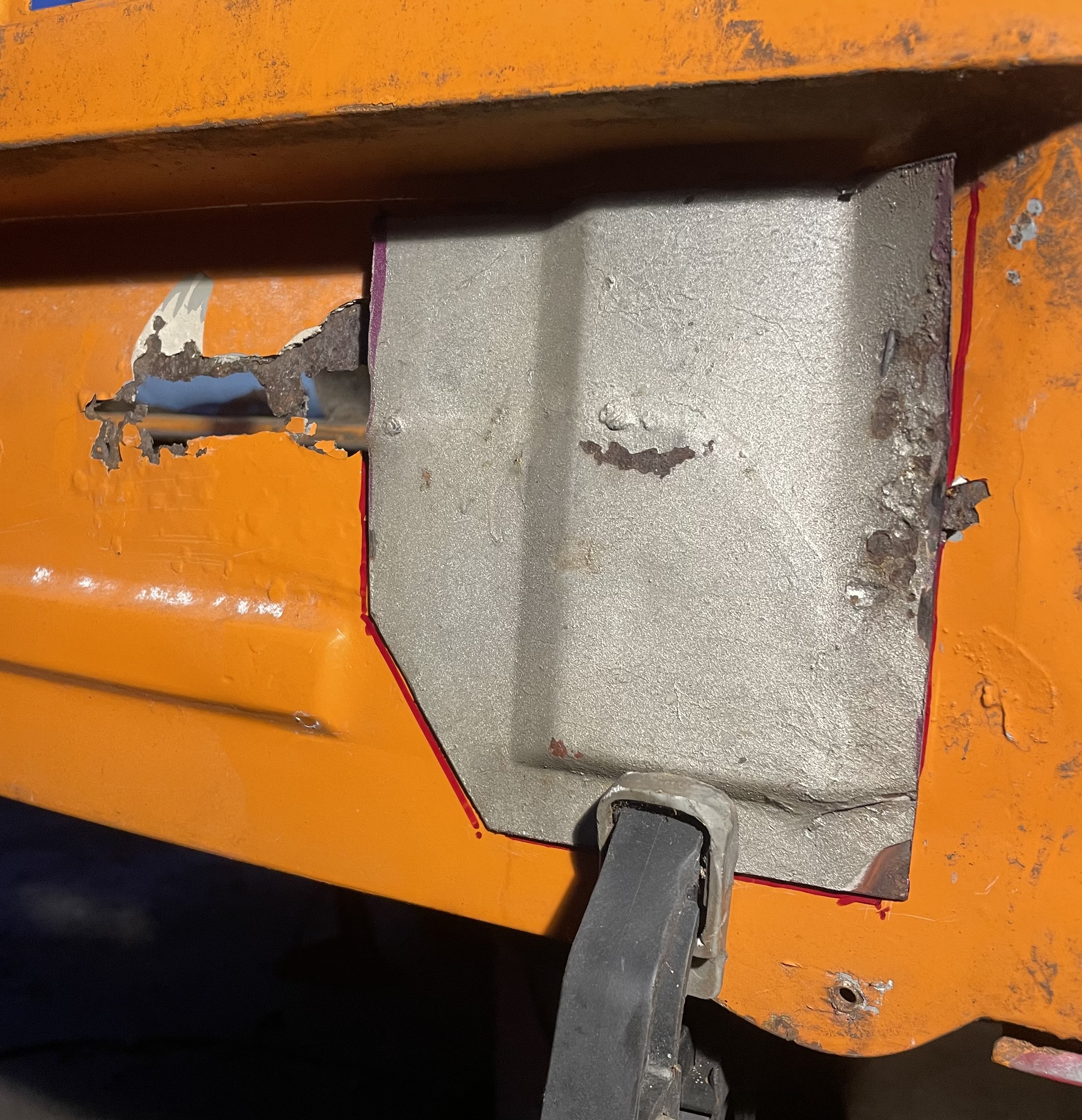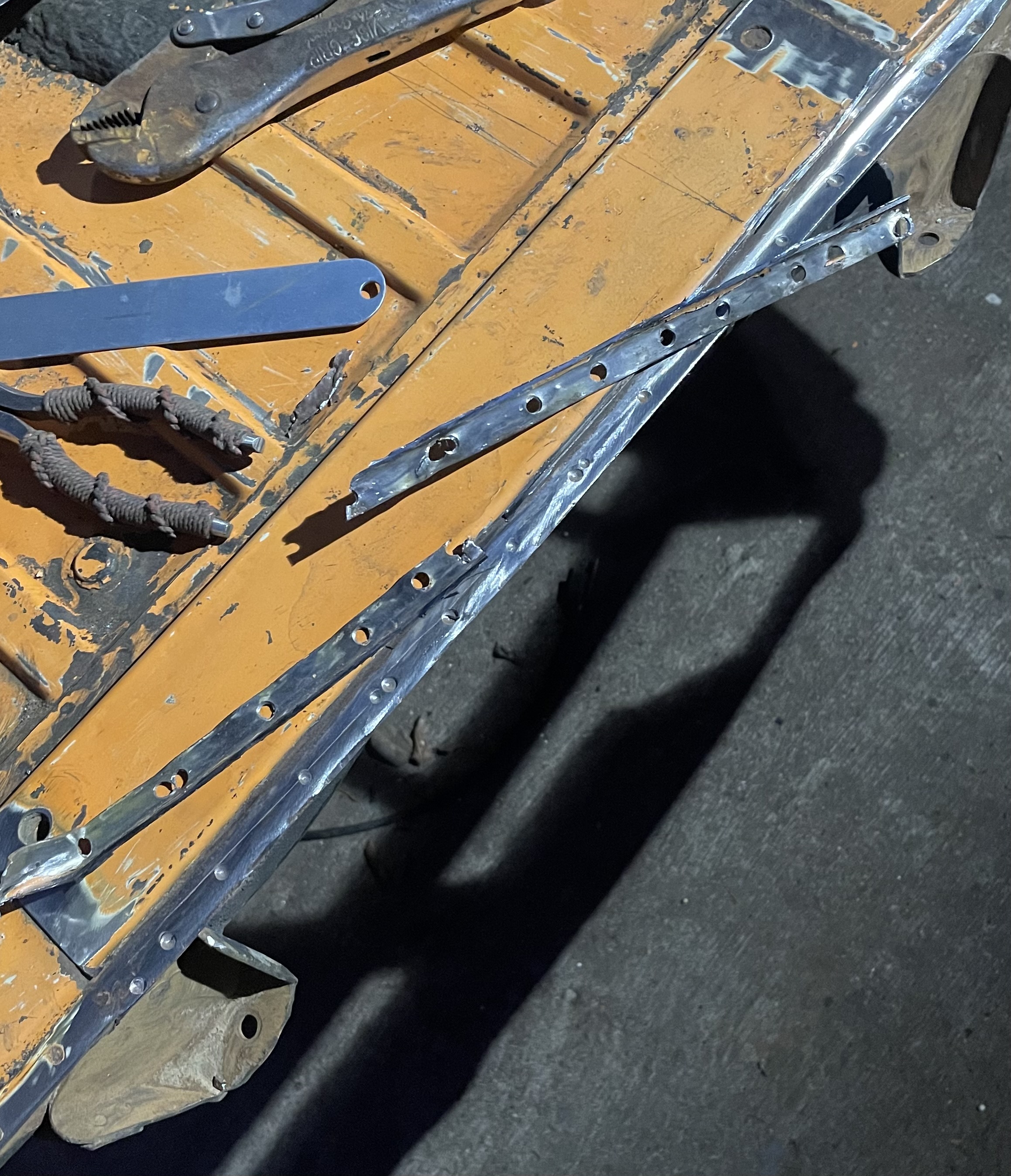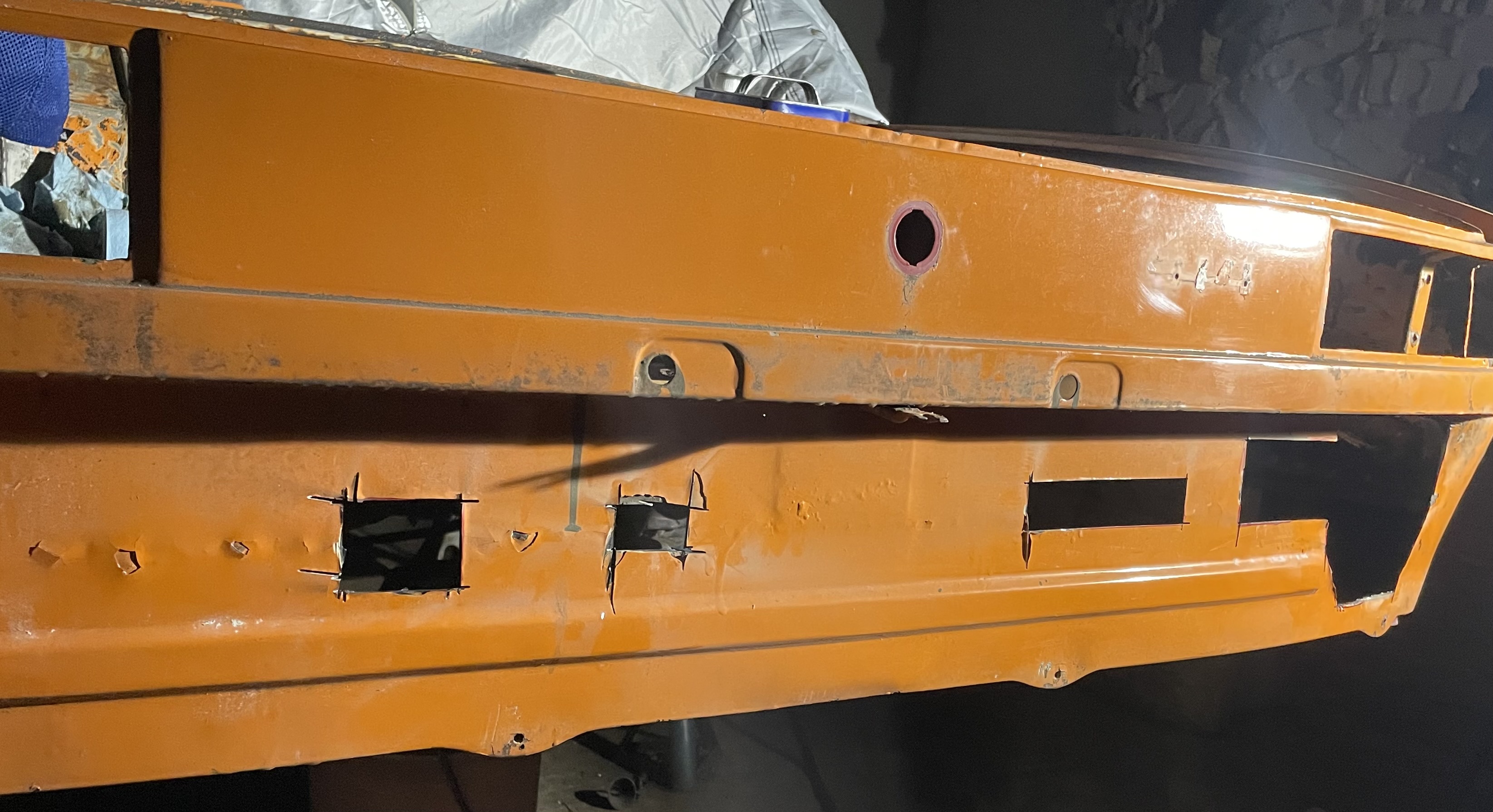 I cut this section off my parts car (late model) to replace the same area .. the contours are the same but I’ll have to eventually drill holes for the early bumper bolts to pass through: