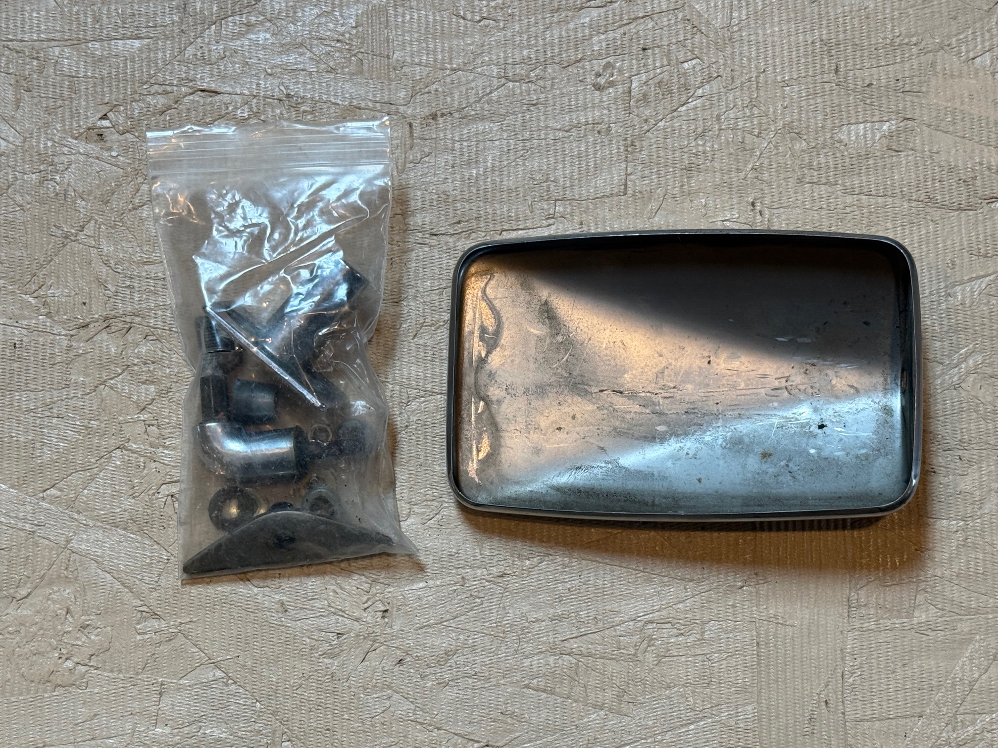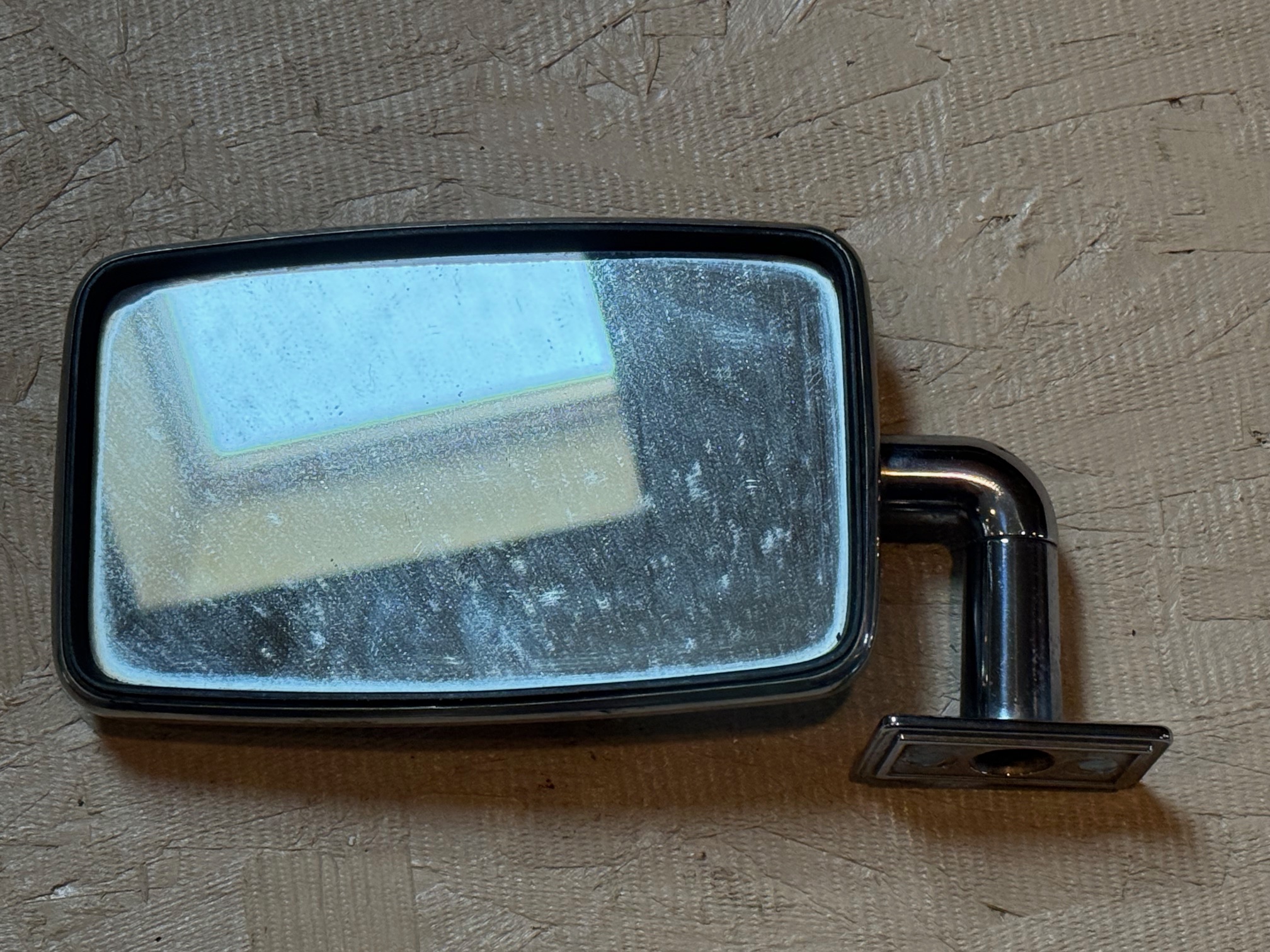#1 - really good condition. Small scuffs. No visible dings or dents. No glass or plastic trim ring. $80 + 12 ship PM me or email - Mark@MarkEpstein.net to purchase. *All mirrors should be properly lubed before trying to turn at the joints. This may mean taking them apart to properly lube each friction surface. Damage to the mirror may result if you try to force the joints to move when they are stiff. Attached thumbnail(s) |