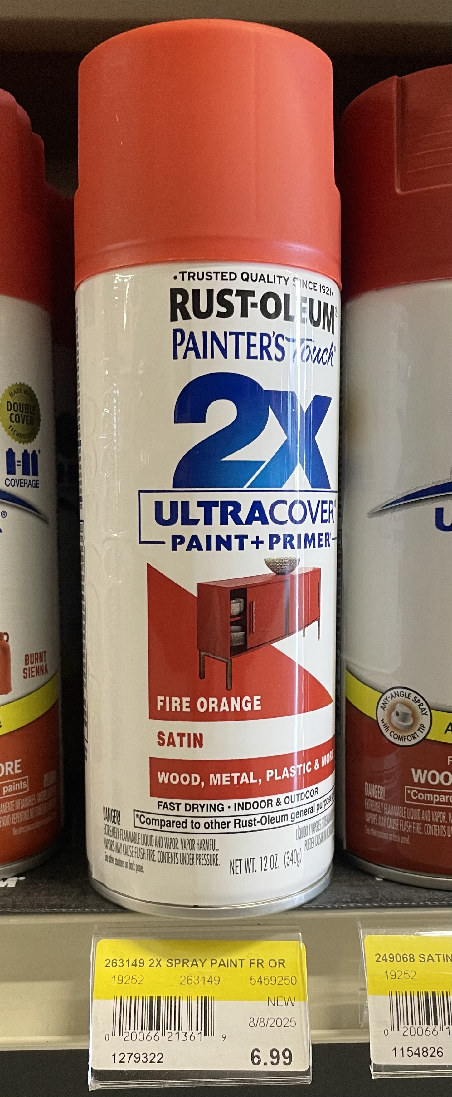 Ok well I picked up some Rust-oleum in “Satin Fire Orange” today, $7..