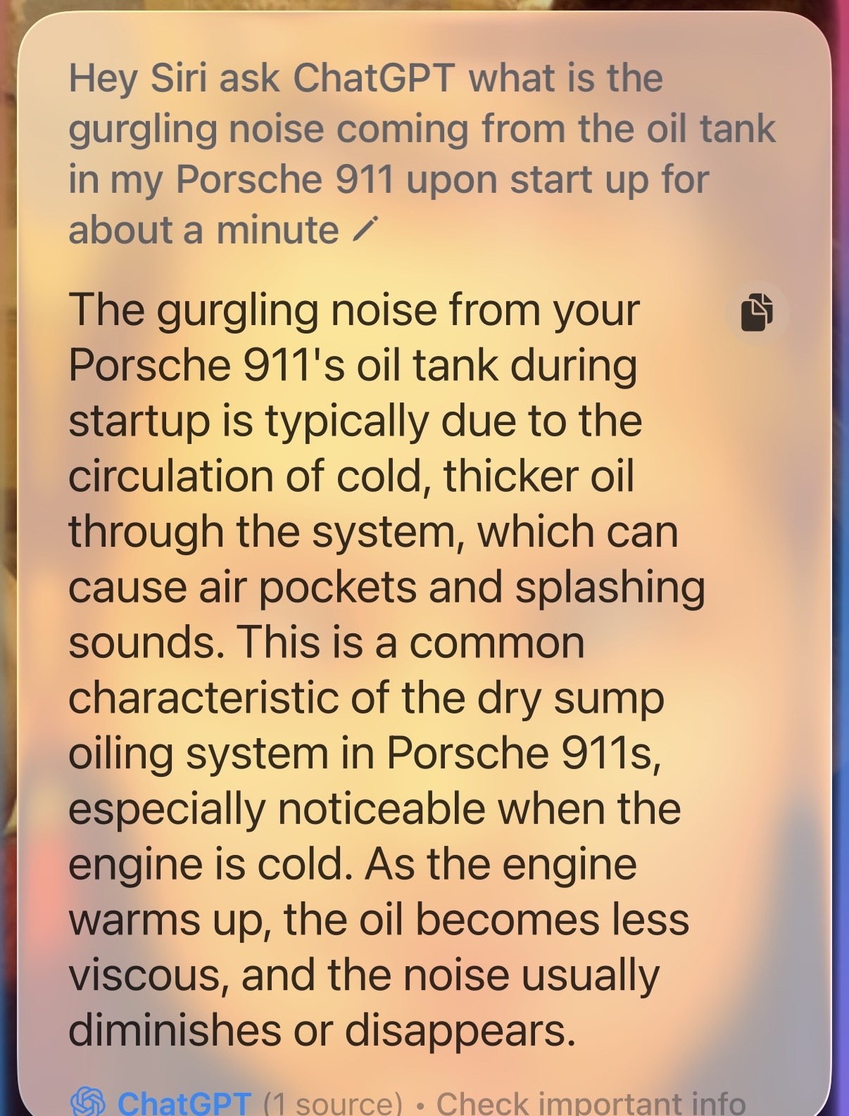 So I’ve had a number of 914s, but my newest is unique to me… a 3.2 six. At the age of 73 after owning over 50 sports cars, I found it rather hilarious that I couldn’t find the dipstick until I talked to ChatGPT. I’ve never had a car until this one where the dipstick was inside the oil fill tube. And I’ve never had a car where checking the oil level was done at idle. So now to my question…when I start her up, she sounds like a volcano with diarrhea for about a minute. I sense that it’s coming from the enormous amount of oil in this puppy. Can someone please explain this phenomena to me?