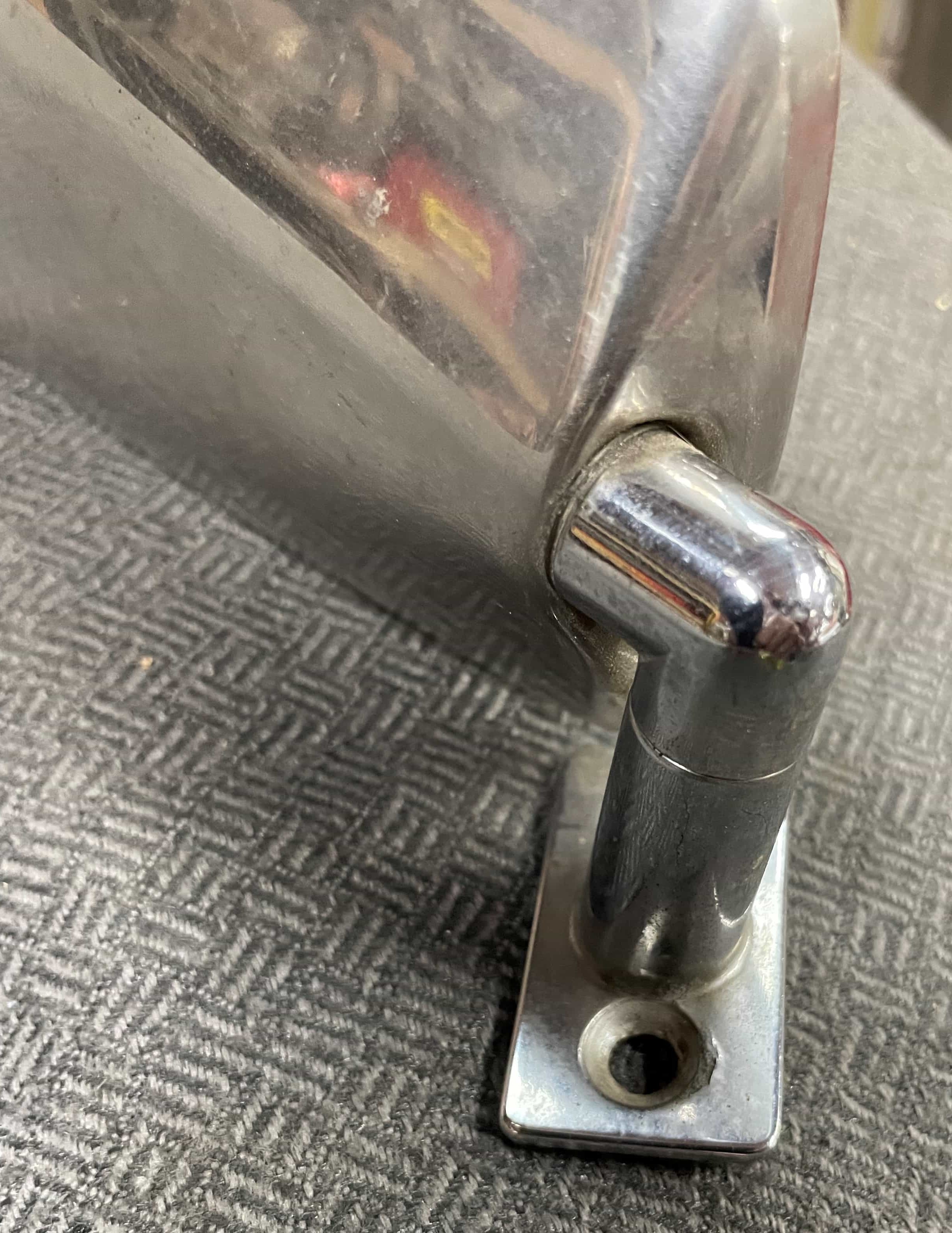 I found an early door mirror in my stash, set up for the pass side, drivers quality, minor chrome flaking at the base and a few black dots in the mirror, not really noticeable.