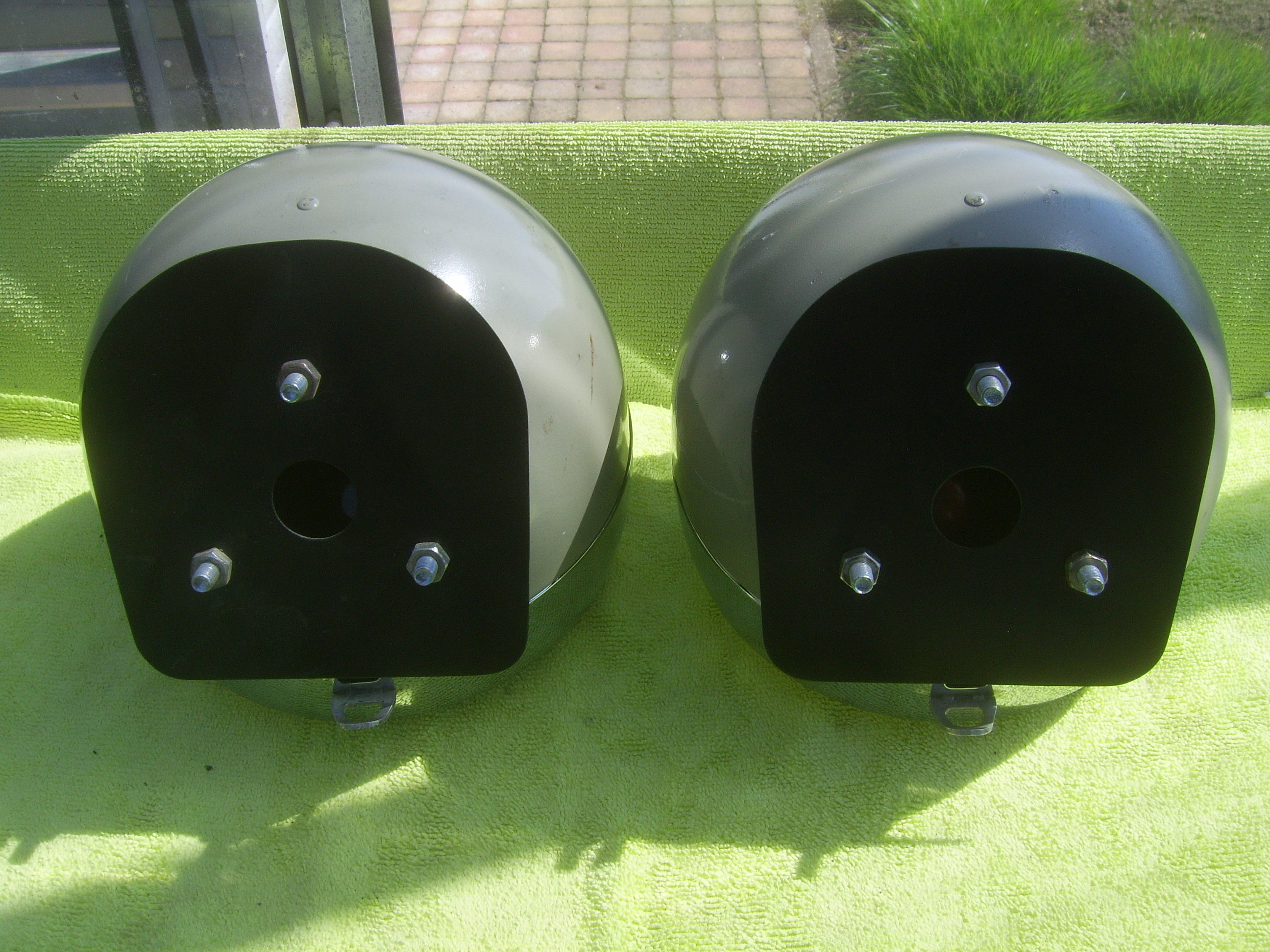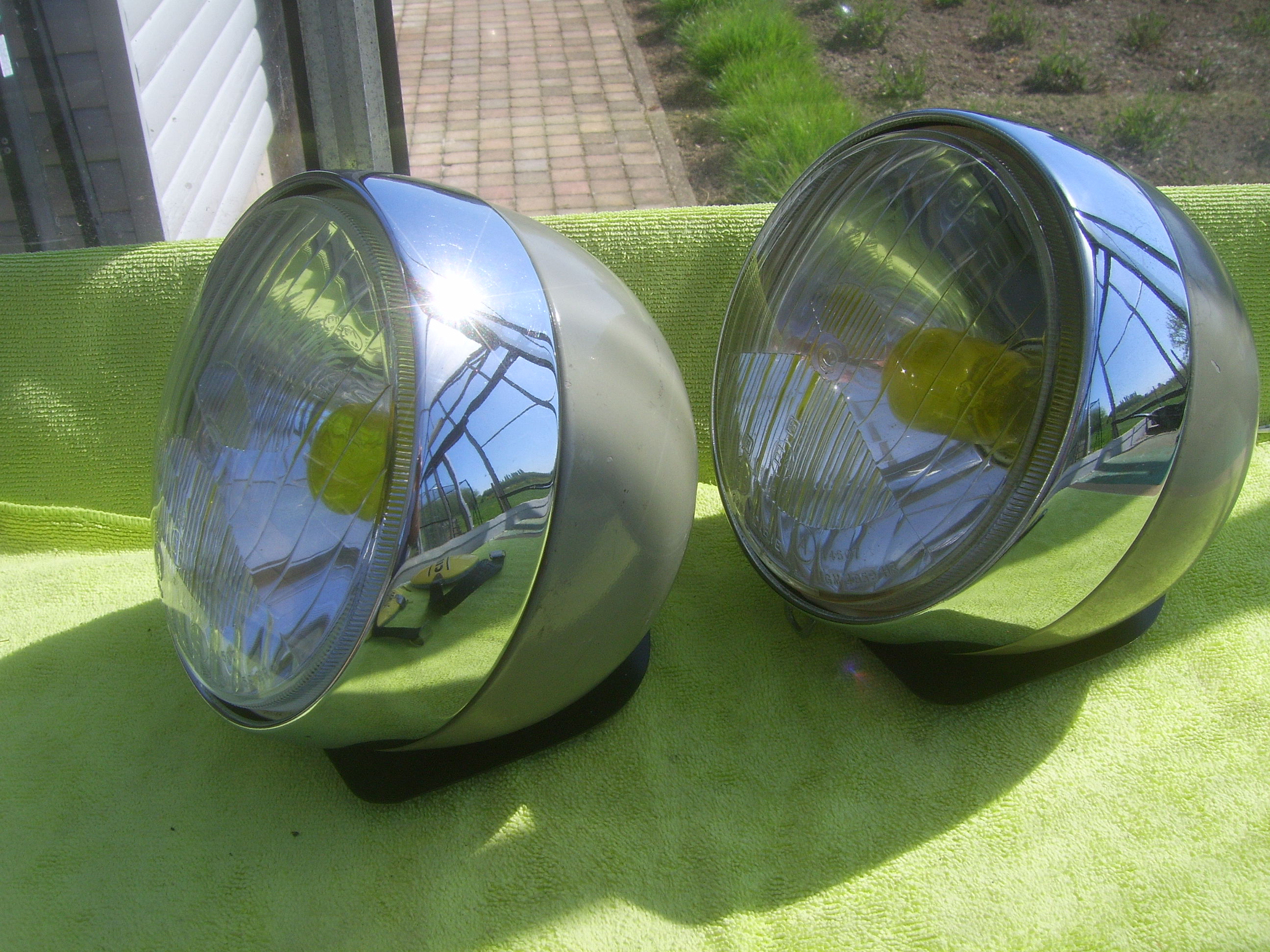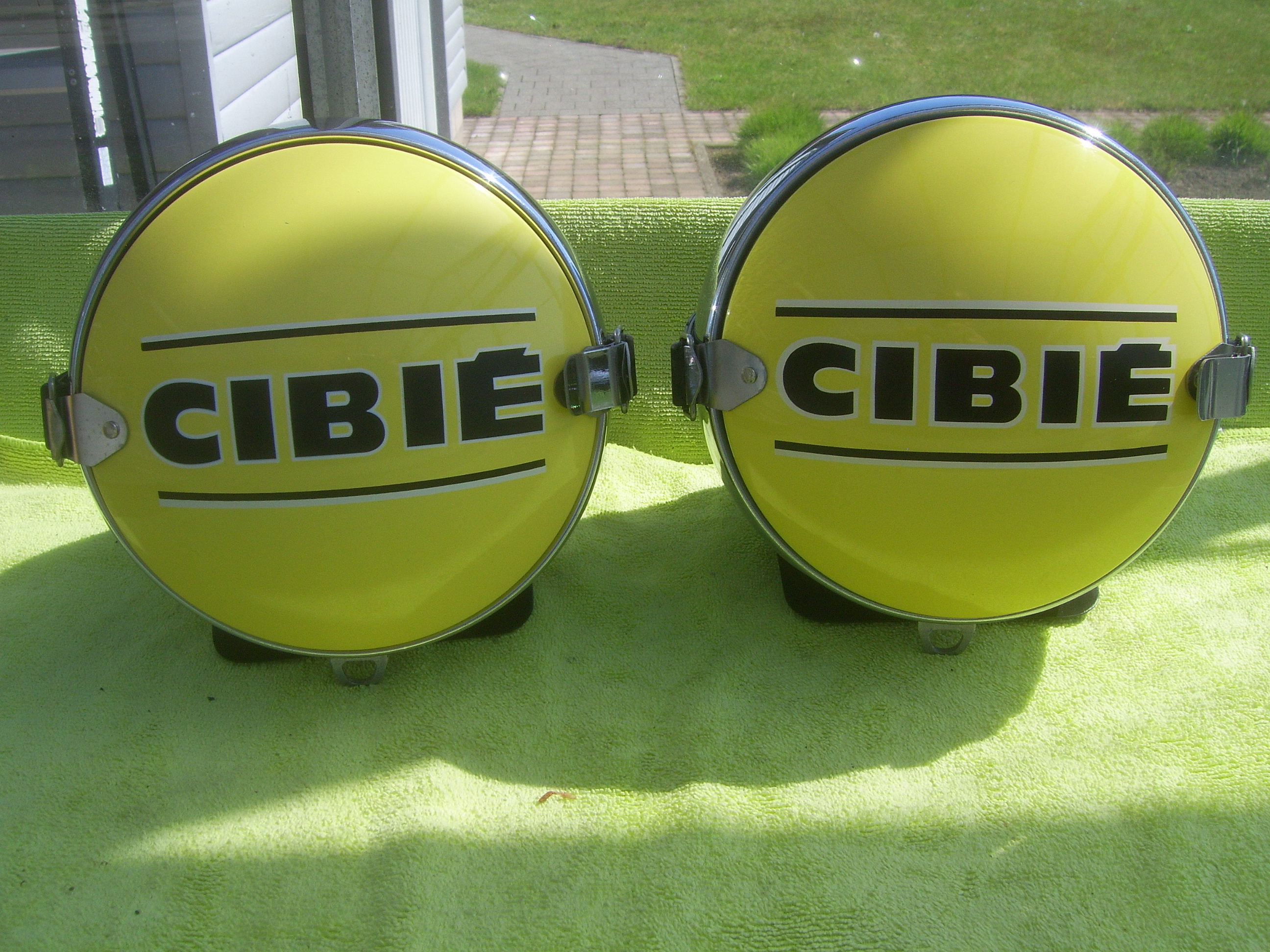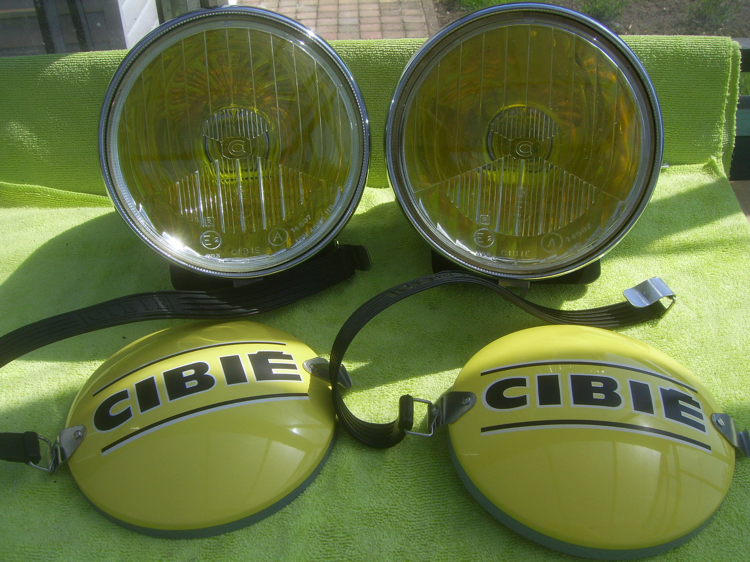 FS: Set Original Cibie hood lights with yellow bulb covers and set reproduction metal Cibie covers, complete with 12 Volt bulbs and mountingplates. Price 695 euro + shipping.